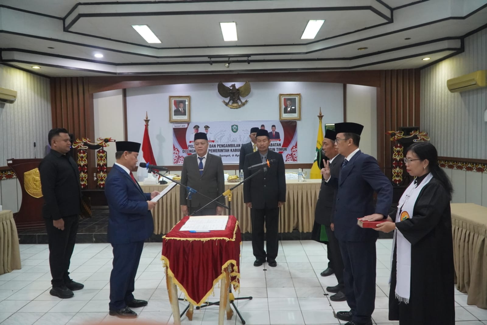 Bupati Kotawaringin Timur, Halikinnor secara resmi melantik dan mengambil sumpah janji jabatan sejumlah Pejabat Pimpinan Tinggi Pratama, Pejabat Administrator, dan Pejabat Pengawas di lingkungan Pemerintah Kabupaten Kotawaringin Timur, Senin (6/4/2026).