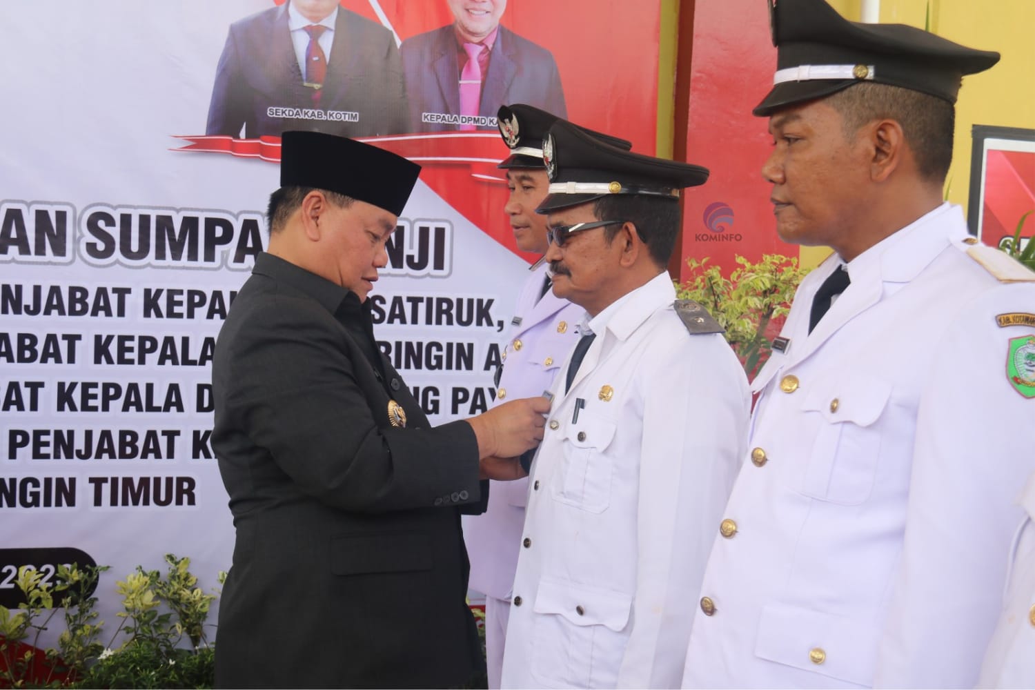 Bupati Kotawaringin Timur H.Halikinnor, SH., MM melantik dan mengambil sumpah janji jabatan terhadap delapan kepala desa (kades), bertempat di halaman Kantor Kecamatan Mentawa Baru Ketapang, Rabu (05/07/2023).